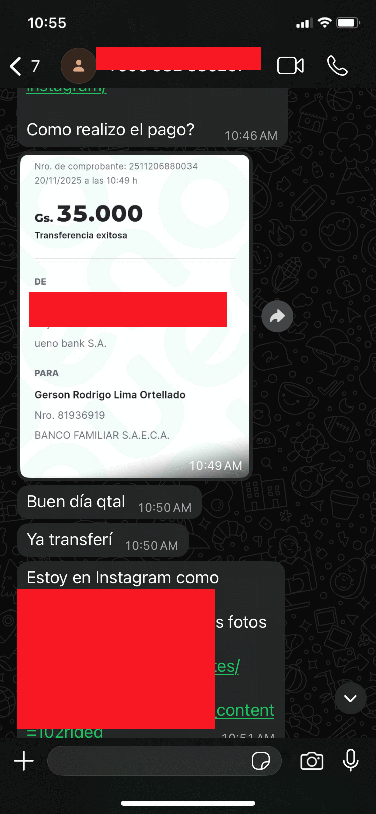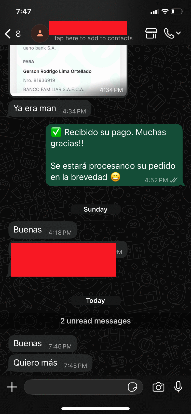 El monto mínimo para comprar en la web o por WhatsApp es de Gs. 30.000 o su equivalente de USD 4.10 si utiliza el método de pago con tarjeta de crédito/débito.