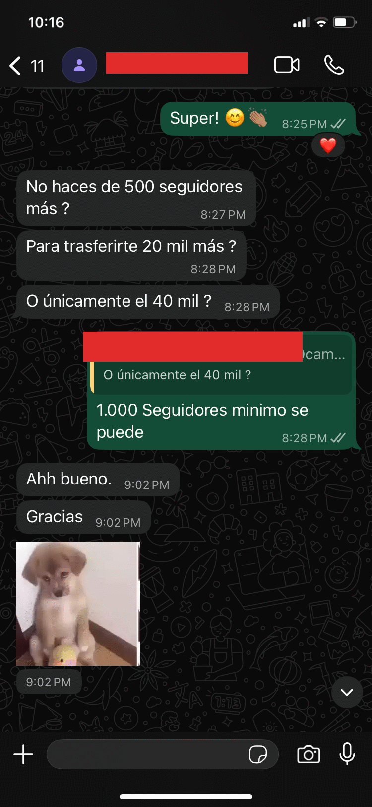 -Nombre de usuario de la cuenta de Instagram u otra red social a donde irán los seguidores.