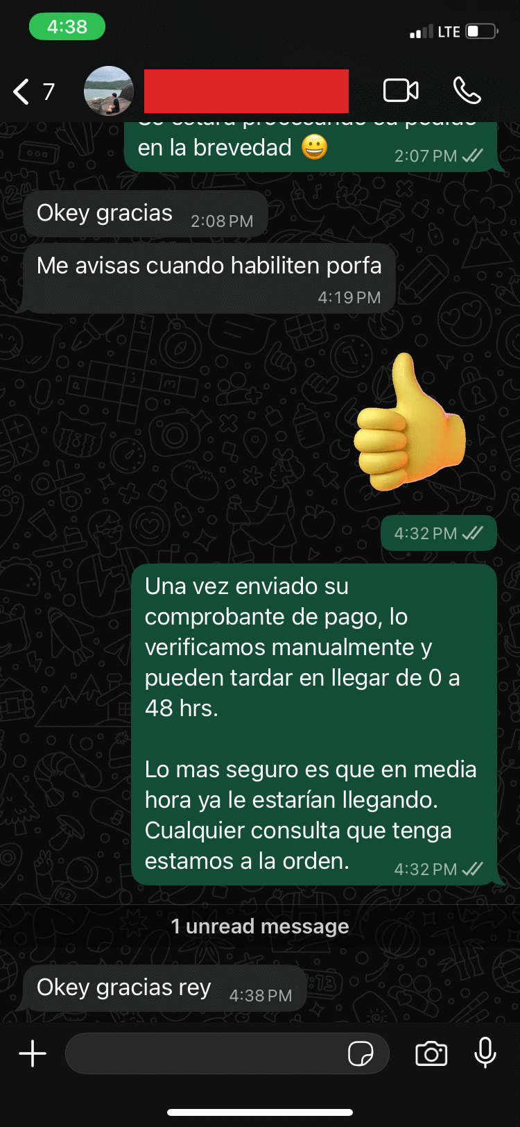 Solicita esta opción de pago a nuestro soporte vía CHAT.